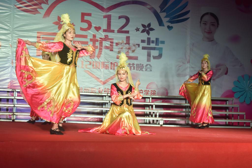 独具特色的民族舞蹈《新疆古丽》在四名来自新疆的同学的演绎下,显得活泼而俏皮,舞蹈展示了她们能歌善舞的一面,把全国各族人民群众热爱祖国,热爱家乡,热爱生活,祈福吉祥安康的向往表现得淋漓尽致。