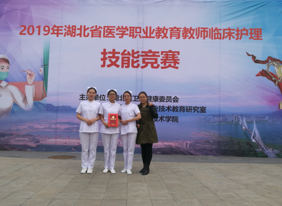 喜报:11月16日vwin德赢ac米兰官方网参加由湖北省卫健委主办的2019年湖北省医学职业教育教师临床护理技能竞赛,由2019年新进教师余刘闯、何博、兰青组成的年轻团队激流勇进出师告捷喜获团体三等奖,何博老师同时获得心电监护单项三等奖。
