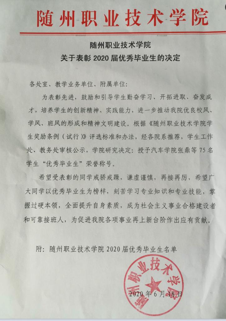 vwin德赢ac米兰官方网2020年优秀毕业生公示