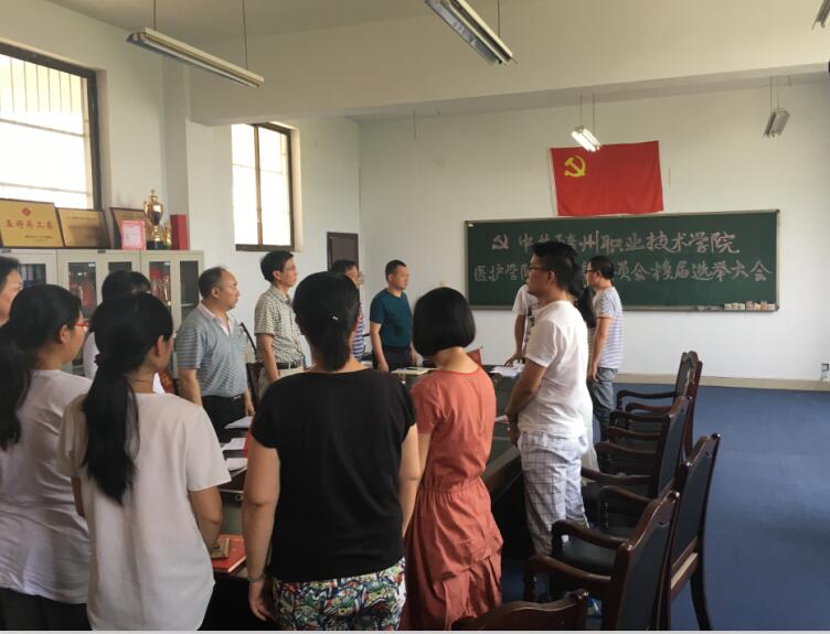 大会在庄严的《国歌》声中隆重开幕。随后大会表决通过了《大会选举办法》、《党总支委员候选人名单》和《监票人、计票人名单》。大会采取无记名投票方式差额选举出陈安明、王文勇、朱海豫、刘金义、吴鹏飞组成医护学院党总支新一届委员会,通过总支部委员会选举,陈安明同志任总支部委员会书记,王文勇同志任总支部委员会副书记。