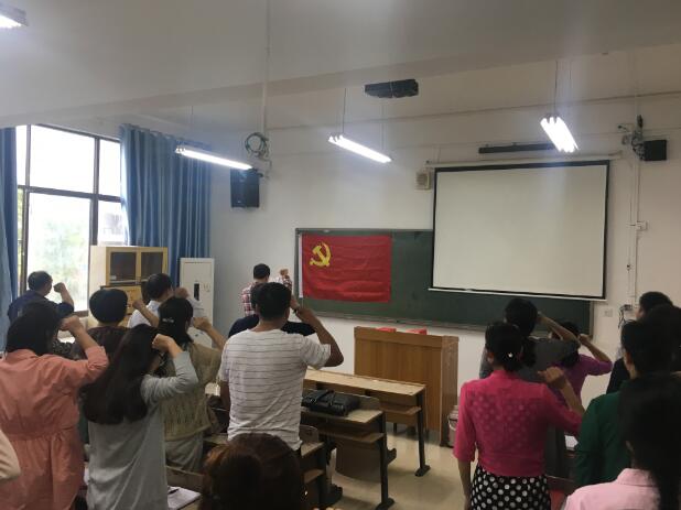 首先,由医护学院党总支书记陈安民同志带领大家重温入党誓词。然后,医护学院教学与科研办公室主任刘金义同志带领大家一起学习党章。接着,医护学院学生工作办公室主任朱海豫同志宣读了学习习近平总书记讲话精神的人民网评论,最后,各支部进行讨论交流,并书写心得体会;会后,由组织委员负责收取本月党费。