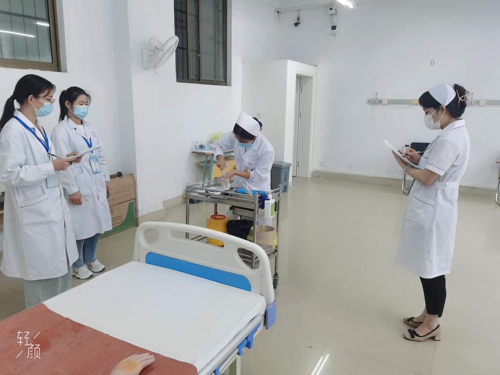 此次竞赛设置为:理论知识竞赛单选题50道,选自“2021年全国职业院校技能大赛高职组‘护理技能’赛项题库”;技能操作赛项为(院内)单人心肺复苏术+密闭式静脉输液技术。