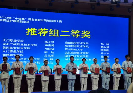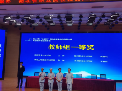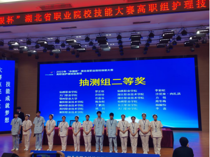 2023年5月12-14日,2022年“中银杯”湖北省职业院校技能大赛高职组护理技能赛项在武汉铁路职业技术学院举办,来自湖北省21所高职院校的护理专业师生参加了此次比赛。本次护理技能赛项作为湖北省教育厅“师生合赛”试点项目,首次要求指导教师以选手身份参加比赛。在首届教师比赛中,侯晓山老师荣获一等奖,高宇老师荣获三等奖。学生组也斩获佳绩,推荐组陈永焕同学荣获二等奖,张熙皓、何颖颖同学荣获三等奖;抽测组丁鹏熹同学荣获二等奖,梁芳华同学荣获三等奖。