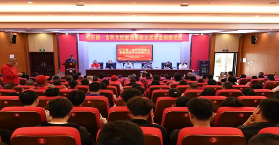 本次仪式联合随州市中心血站共同设立“红石榴·金昕无偿献血奉献奖”,用于奖励具有品学兼优、自强不息、热心公益、无私奉献精神,并多次志愿参与无偿献血的在校大学生,充分激发调动学生自觉参与无偿献血事业,铸牢中华民族共同体意识。