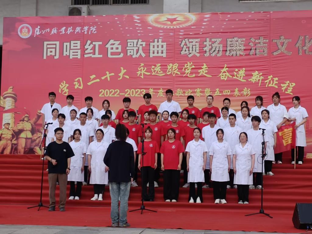为贯彻落实党的二十大精神,激发学生爱国情怀,展示学生良好的精神风貌,2023年5月11日下午vwin德赢ac米兰官方网在图书馆门前举办了“同唱红色歌曲,颂扬廉洁文化” 红歌比赛暨2022-2023年度五四表彰。本次活动由共青团vwin德赢ac米兰官方网委员会主办,各二级学院共同承办。