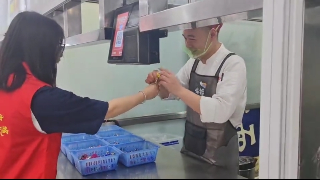 活动特别设置了温情满满的致敬环节。志愿者们精心准备了象征“苦中有甜”的棒棒糖,亲手赠送给食堂工作人员、保洁阿姨和教师代表。“阿姨,您辛苦了!这颗糖甜不甜?”“甜!心里更甜!”简单的对话,让平凡的劳动闪耀出温暖的光芒。