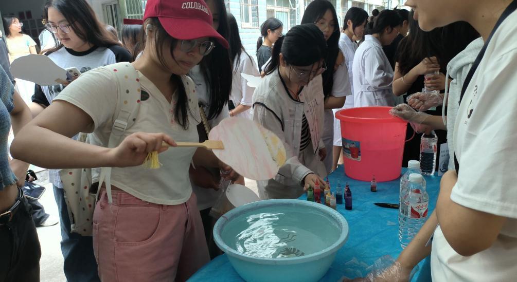 活动巧妙将漂漆艺术与心理关怀结合,通过沉浸式创作引导师生释放压力、专注当下。在色彩与纹理的变幻中,参与者不仅感受传统工艺的深厚底蕴,更在专注的创作过程完成了一次心灵疗愈。学院心理辅导站站长夏老师指出:“漂漆工艺需要耐心与专注,这种慢节奏的创作能有效调节身心状态,而独特的作品更让学生获得成就感,有助于提升心理韧性。”此外,活动还设置了“扇面心语”环节,鼓励师生在扇面空白处书写寄语或诗句,以传统文化载体传递温暖与关怀。