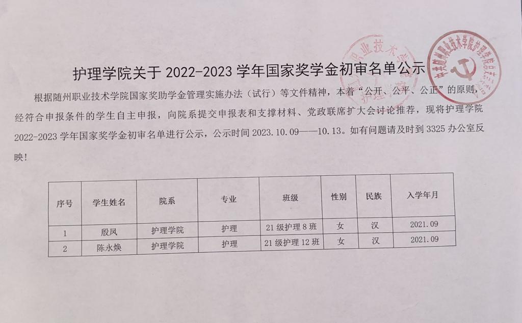 根据vwin德赢ac米兰官方网国家奖助学金管理实施办法(试行)等文件精神,本着“公开、公平、公正”的原则,经符合申报条件的学生自主申报,向院系提交申报表和支撑材料、党政联席扩大会讨论推荐,现将vwin德赢ac米兰官方网2022-2023学年国家奖学金初审名单进行公示,公示时间2023.10.09——10.13。如有问题请及时到3325办公室反映!