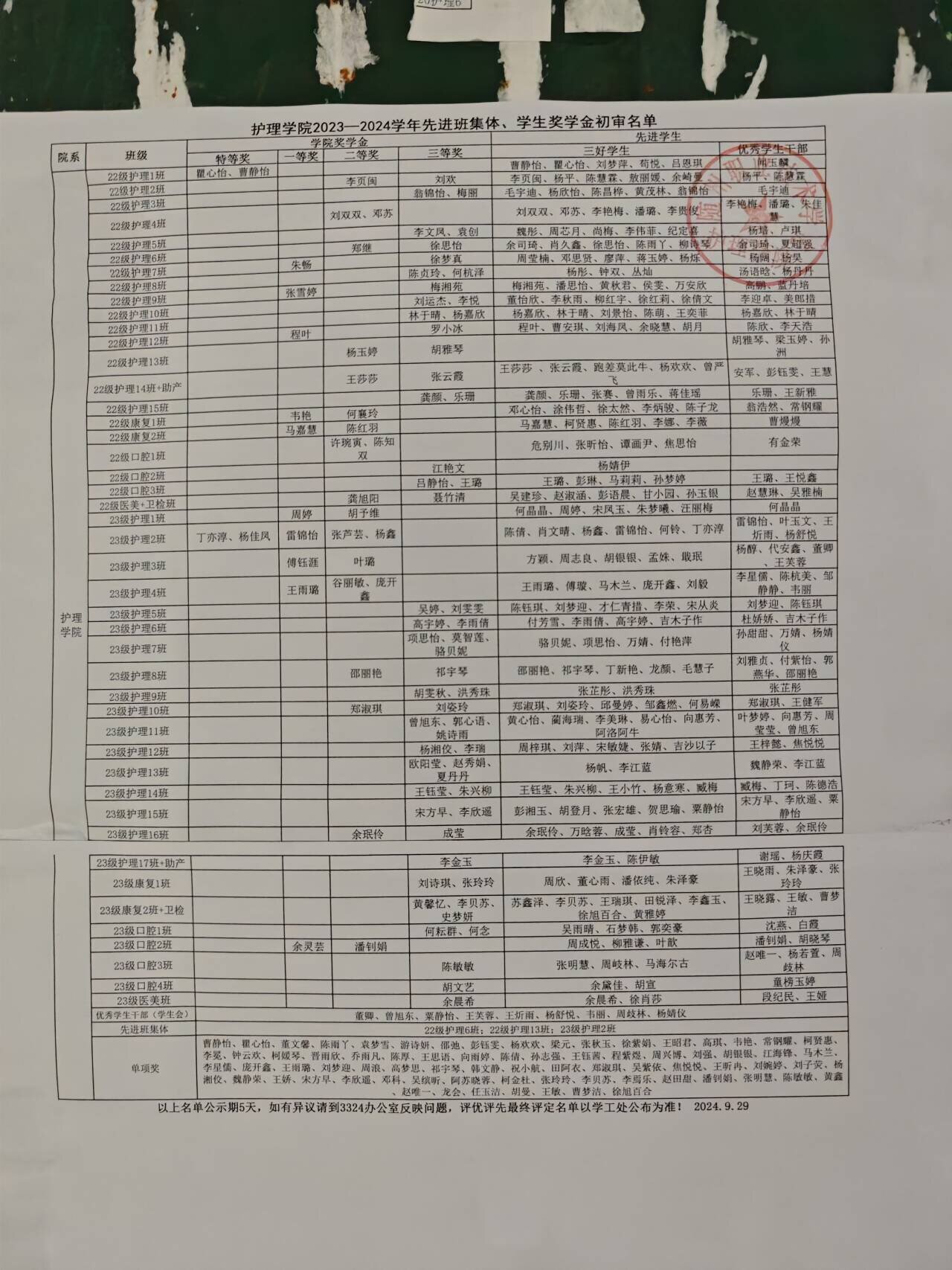根据《vwin德赢ac米兰官方网学生奖励及实施办法(试行)》等文件精神,本着“公开、公平、公正”的原则,经班级评议小组讨论上报、党政联席扩大会讨论,现将2023-2024学年学生评优评先初审名单公示如下,公示时间:2024.9.29—2024.10.10,如有问题请及时到3324办公室反映!