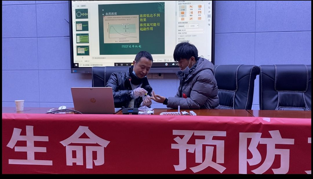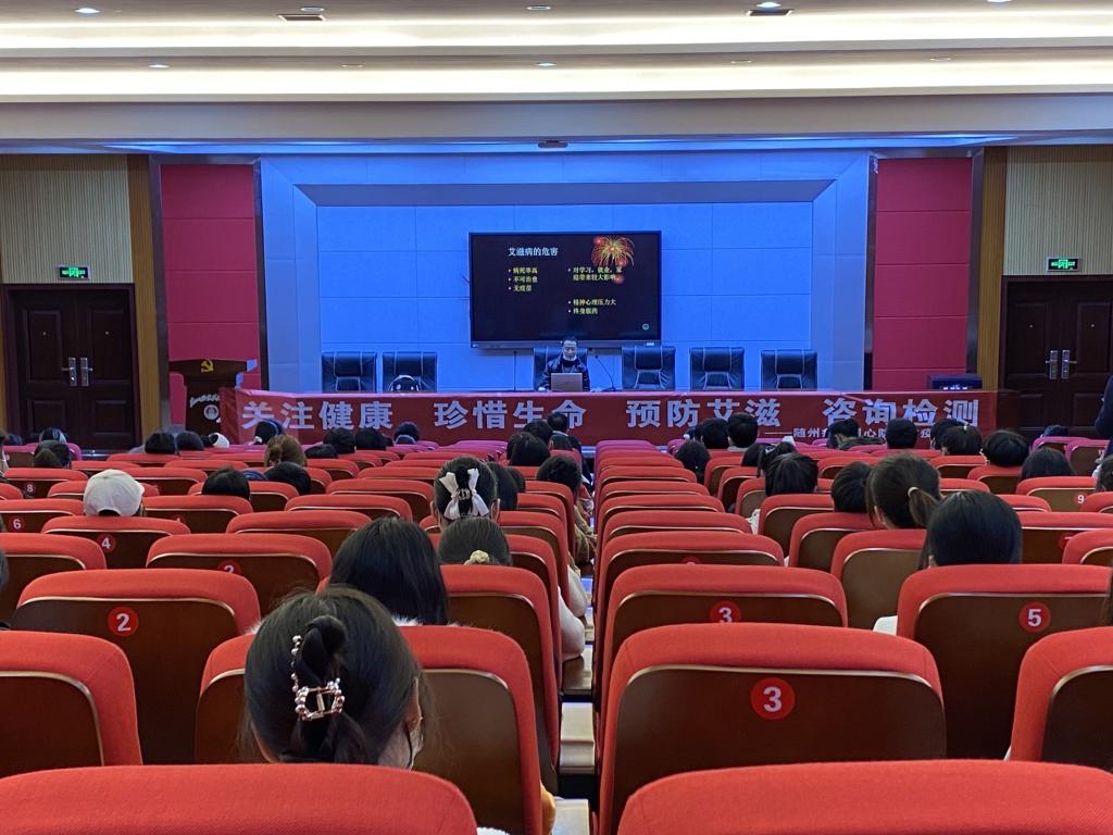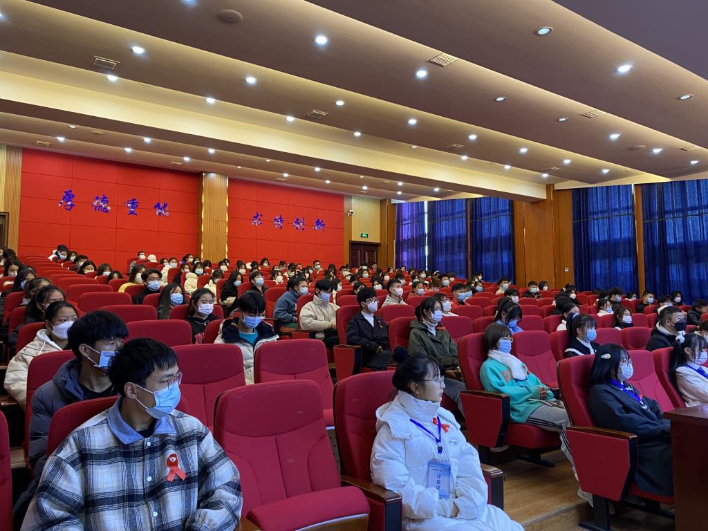 12月1日下午2点,随州市疾控中心同心防艾工作组的谢恩光主任在云桂楼学术报告厅为同学们开展了预防艾滋病知识讲座。在他生动的讲解带领下,现场气氛非常活跃,同学们了解到艾滋病主要传播途径通过血液、母婴、性交等方式,日常的生活接触是不会造成传播的。最后,通过两个互动环节,伴着一片掌声中讲座进入了尾声。